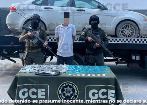 Junto con la droga y el vehículo, el presunto responsable fue puesto a disposición de las autoridades de la Fiscalía General del Estado.