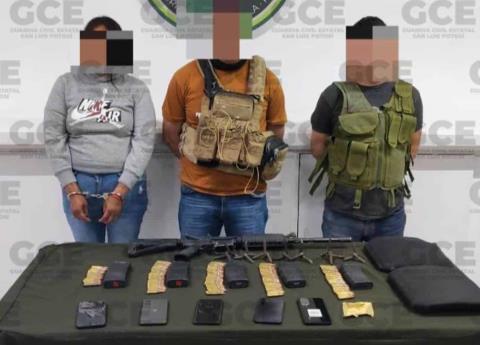 Elementos de la Guardia Civil Estatal adscritos a la región Altiplano, detuvieron a dos sujetos y una mujer, presuntos integrantes de una célula criminal, después de que dispararon en contra de las fuerzas estatales.