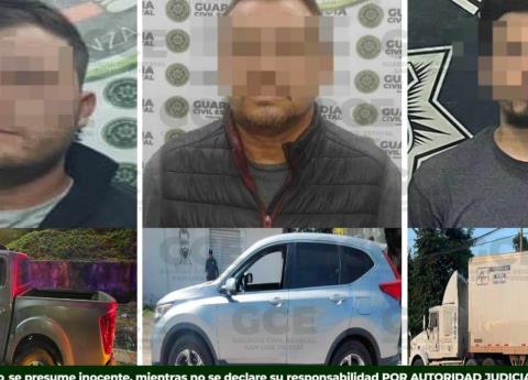 Elementos de la Guardia Civil Estatal detuvieron a tres presuntos delincuentes en diferentes acciones, por el probable delito de tripulación de vehículos con reporte de robo, además se localizaron cinco unidades más.
