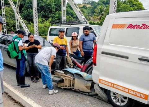 En la carambola resultó lesionada la conductora de la moto color azul, por lo que fue auxiliada por elementos del grupo AVE, quienes la trasladaron al Hospital IMSS Bienestar, en tanto que agentes de Policía y Tránsito Municipal acudieron a tomar conocimiento de los hechos para deslindar responsabilidades, logrando que las partes involucradas dialogaran y llegaran a un acuerdo para la reparación de los daños.