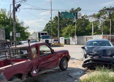 Cuantiosos daños materiales fue el saldo de un choque registrado la tarde del miércoles, en la intersección del bulevar Lázaro Cárdenas y la calle Toltecas, entre un auto de procedencia americana, guiado por una mujer que no respetó la luz roja del semáforo, lo que provocó que se impactara de frente contra una camioneta tipo pick up.