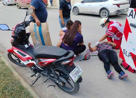 Con golpes en una pierna resultó la conductora de una motocicleta de modelo reciente, al derrapar la tarde del sábado en la calle principal del fraccionamiento Norte Residencial.
