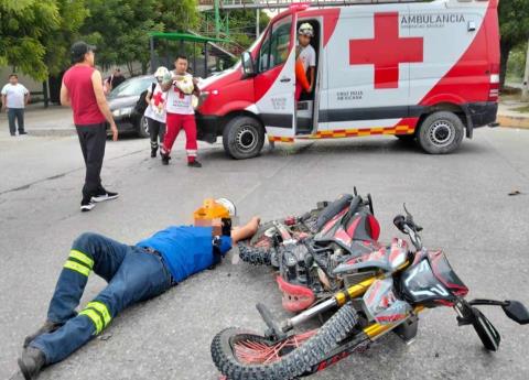 Paramédicos de la cruz Roja acudieron a proporcionar apoyo al motociclista, a quien trasladaron a un centro hospitalario local.