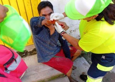 Fue durante la tarde del domingo, cuando un masculino resulto lesionado en la mano derecha, tras sufrir una lesión con un vidrio cuando se encontraba realizando trabajos de limpieza.