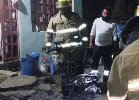Atendiendo un reporte hecho por vecinos, acudieron al lugar elementos del Cuerpo de Bomberos, quienes controlaron el fuego, pero no pudieron evitar que la moto fuera consumida en su totalidad, además de agentes la Policía Municipal y de la Guardia Civil Estatal, para tomar conocimiento del hecho.